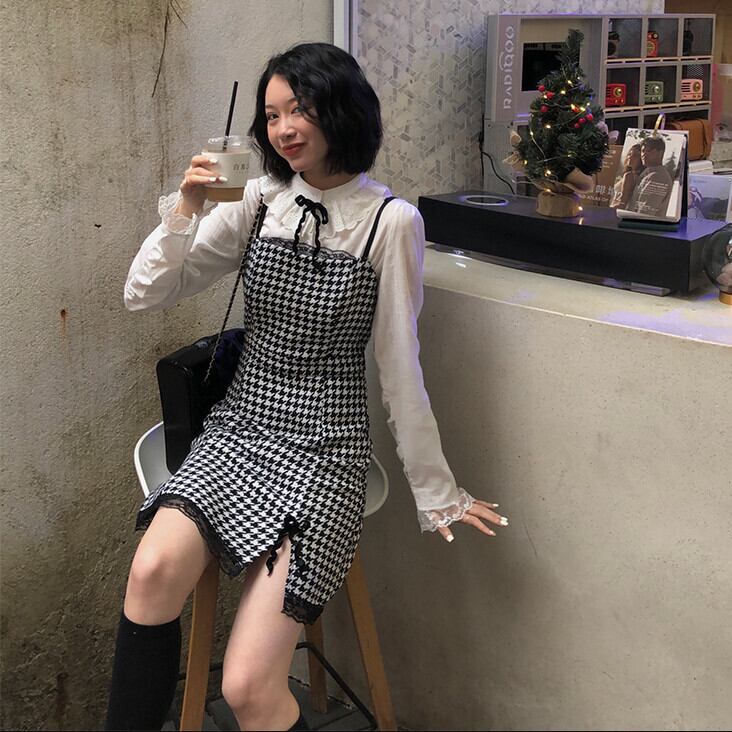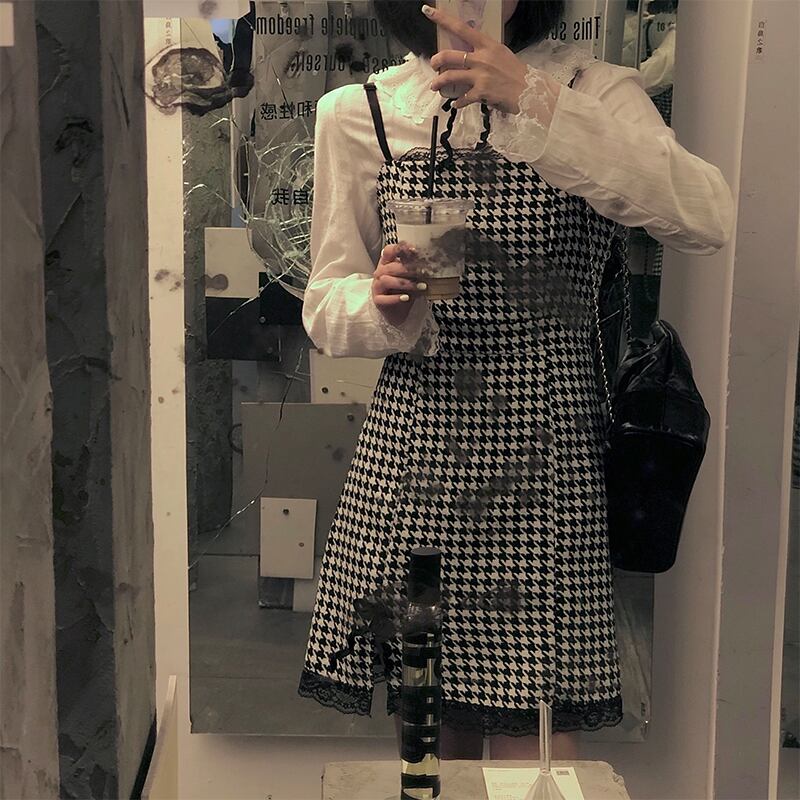 レディースレースシャツ トップス スプリング格子柄ドレス 春物 kumikum1878202455