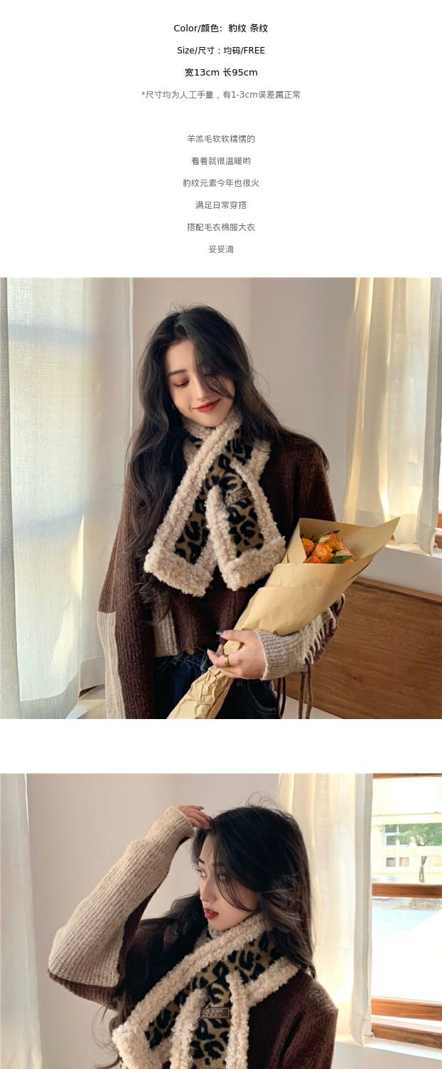 レッドスタンダードレオパードプリント柄スカーフ ウィンターウール レトロ 冬物 kumikum13269738045