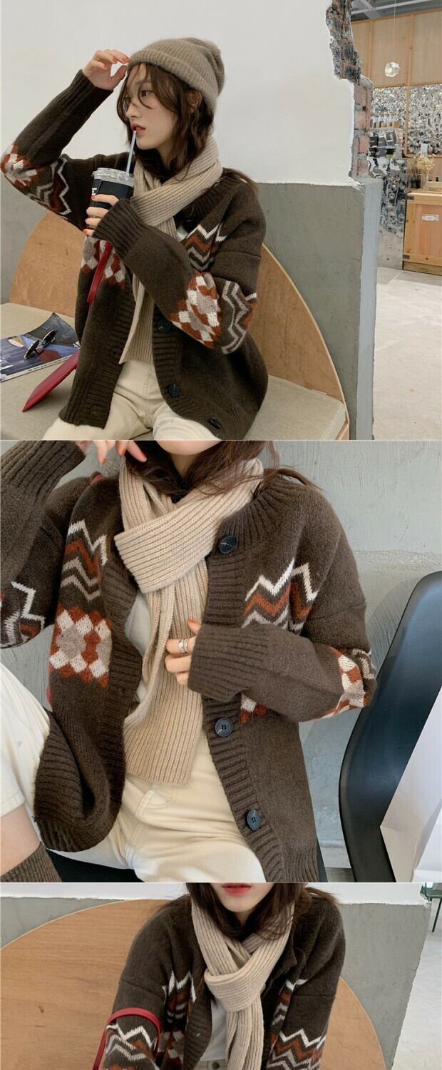 スタンダードカラーラウンドネックセーター カーディガンジャケット ウィンタールーズ ロング レトロ 冬物 Oネック kumikum12834106705