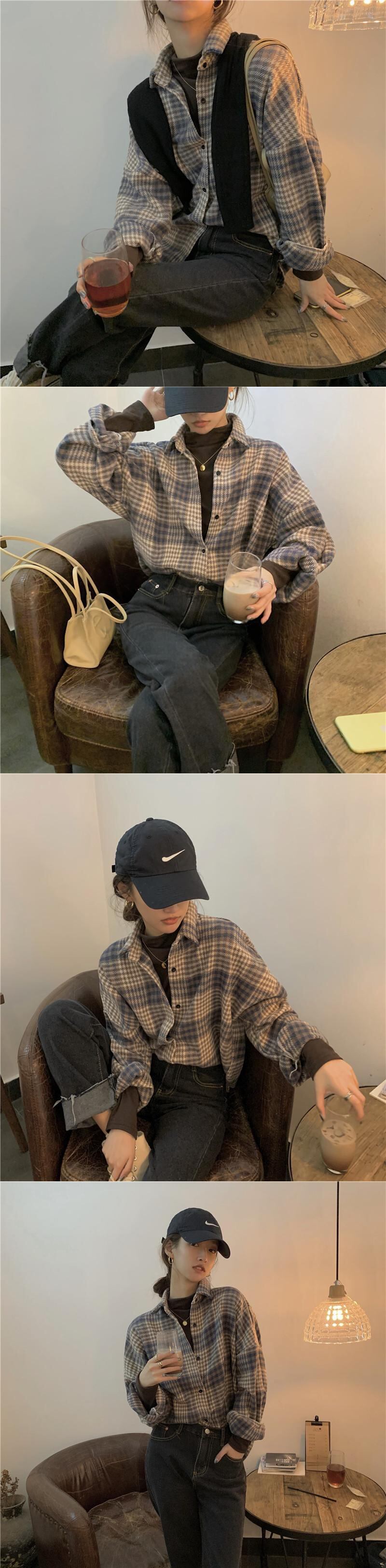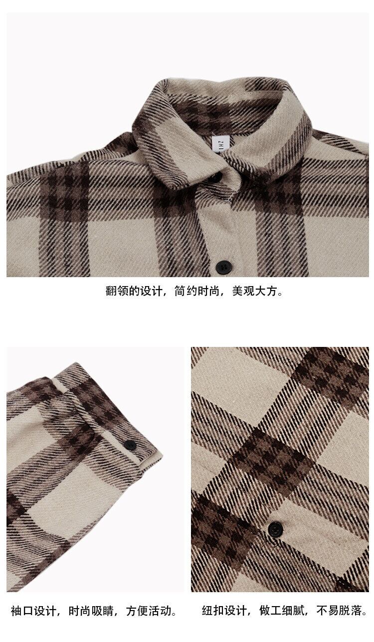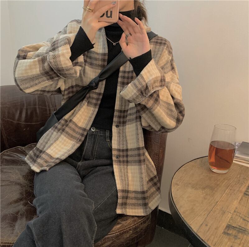 スタンダード格子柄ロングシャツ ジャケット スプリングカジュアルスタイル レトロ 春物 kumikum57693085014