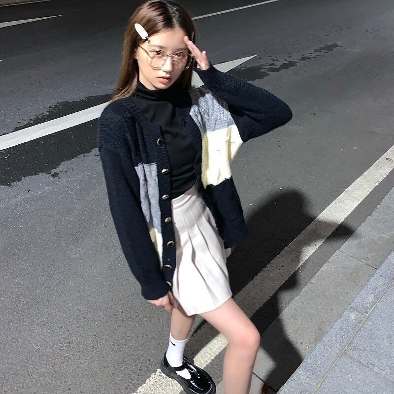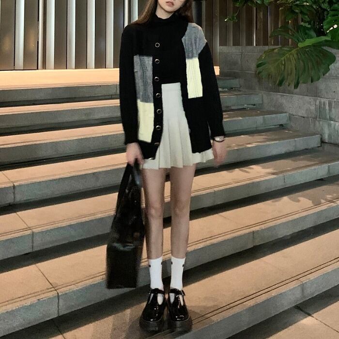 色:カラーブロックセーターコート,ミアプリコットスカートS,ミアプリコットスカートM,ミアプリコットショートスカートL