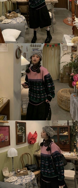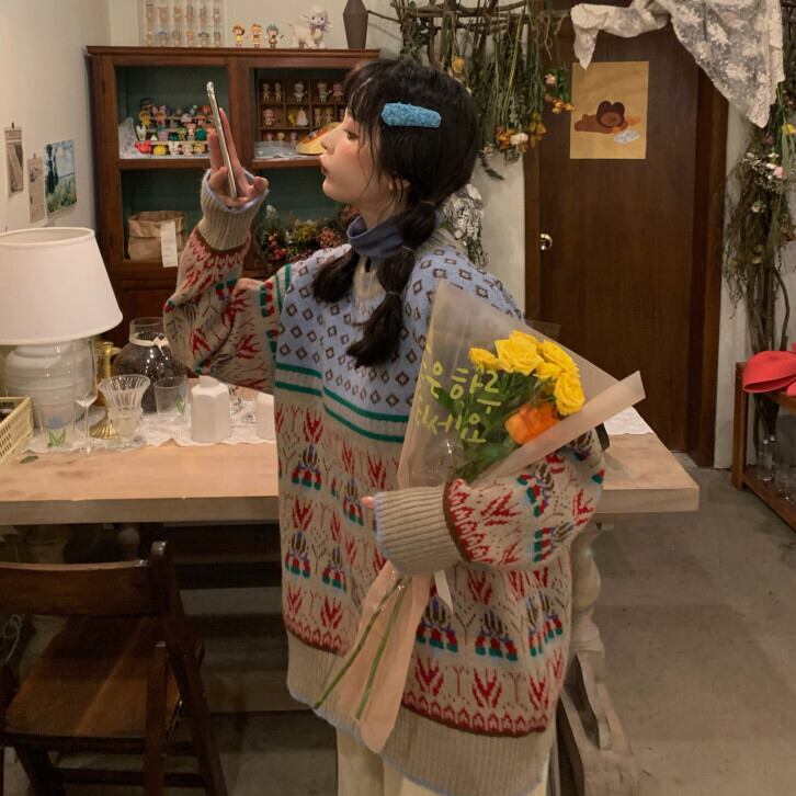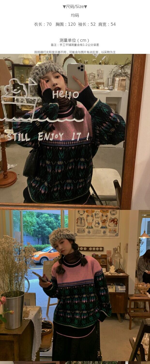 スタンダードジャカードセーター レディースウィンタールーズニットトップス レッド レトロ 冬物 kumikum93097178597