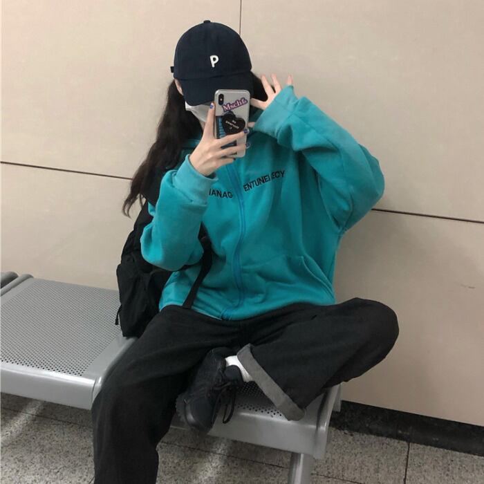 プリントフードセーター ジャケット レディースオータムウィンタールーズベルベットプルオーバー ロング 秋物 冬物 kumikum4216261826