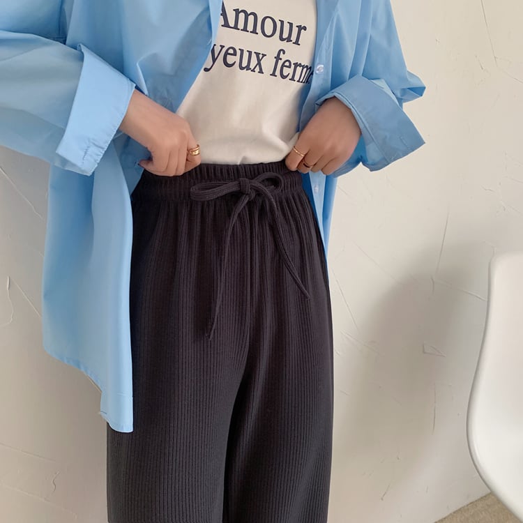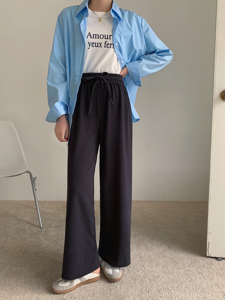 カジュアルパンツ ウィンターハイウェスト薄手ブラック 冬物 kumikum15709784494