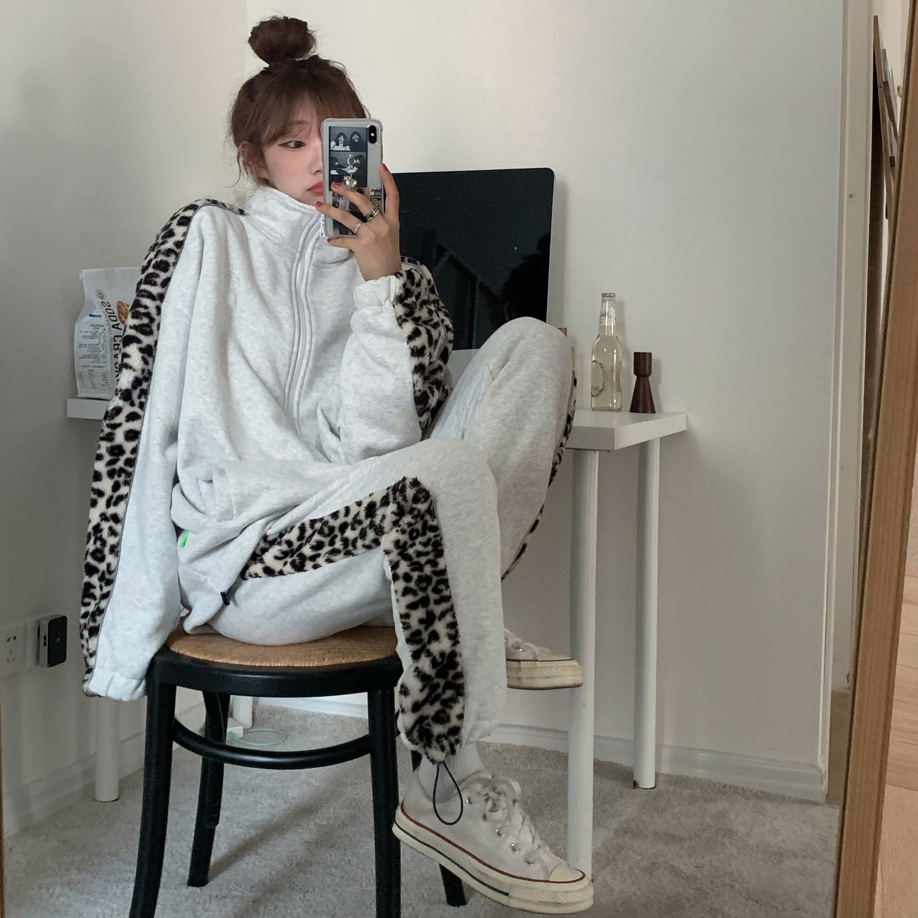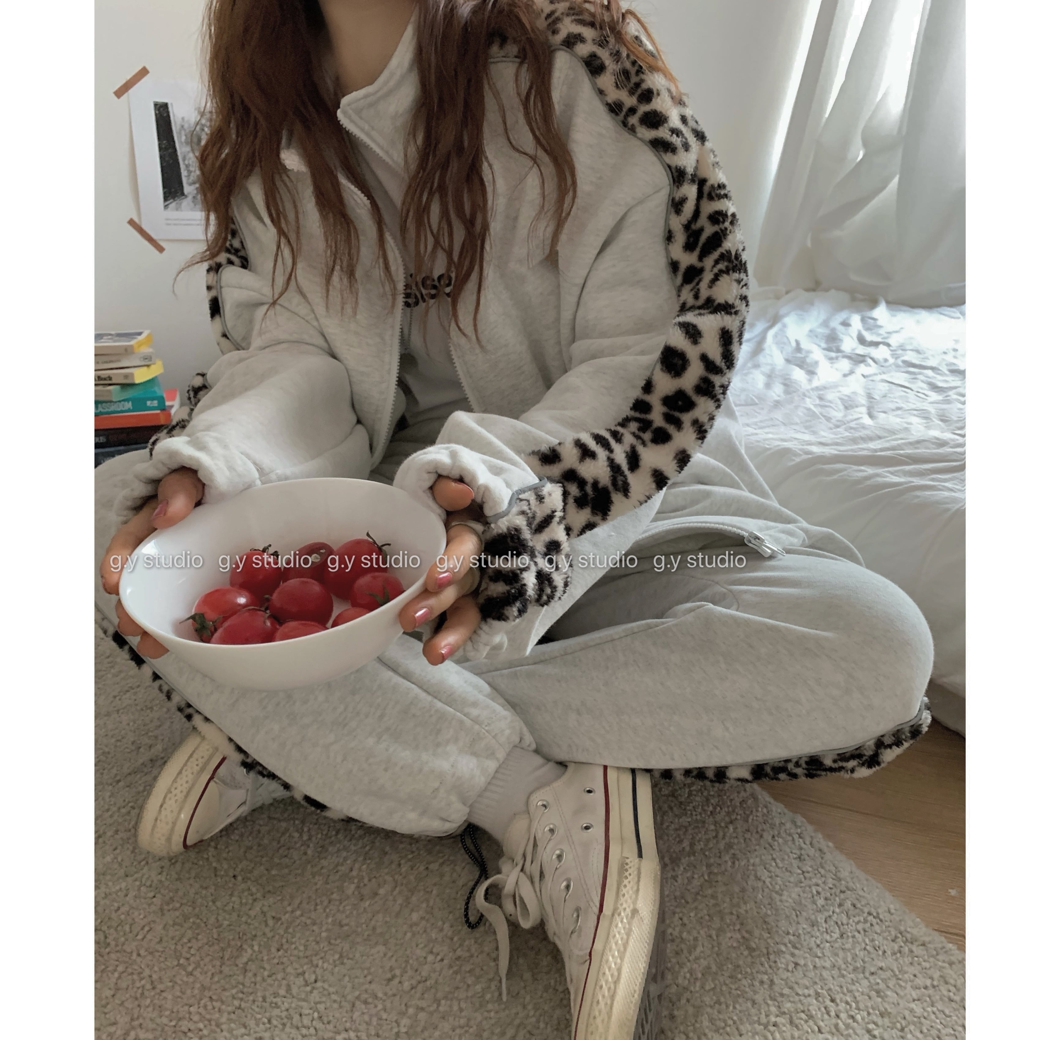 ウィンタールーズレオパードプリント柄セーター ジャケット カジュアルパンツ 冬物 ステッチ kumikum27276949975
