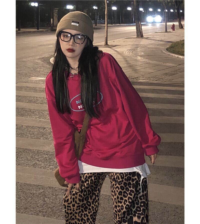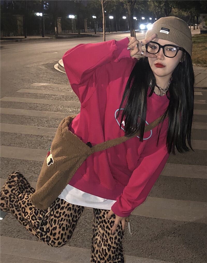 プリントラウンドネックセーター ジャケット ウィンターレオパードルーズ 冬物 Oネック kumikum16935641942