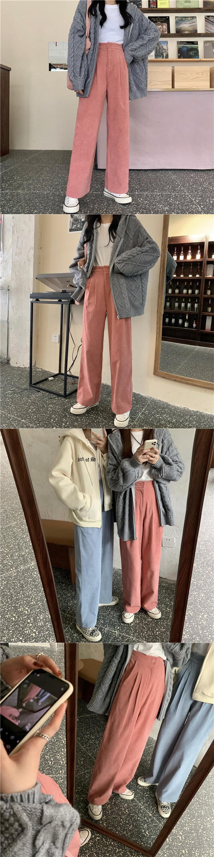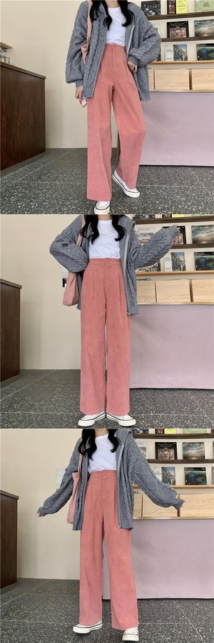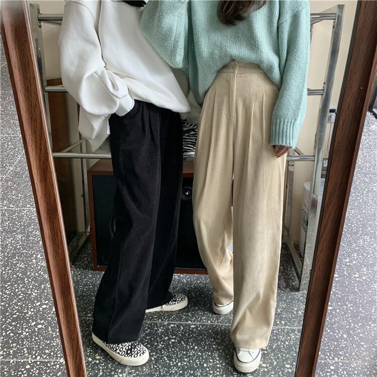 コーデュロイカジュアルパンツ オータムルーズ薄手ハイウェストウェストワイドレッグ 秋物 ワイドパンツ kumikum36061699705