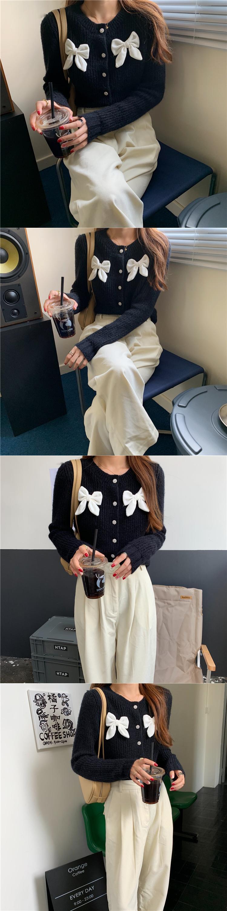 セーター トップス スプリングショートルーズカーディガンコート ロング リボン 春物 kumikum26325521917