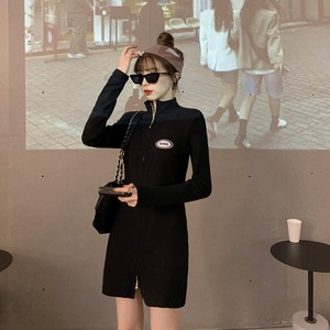 レッドジッパードレス スプリングスリムショートスカート ロング 春物 kumikum35364747716