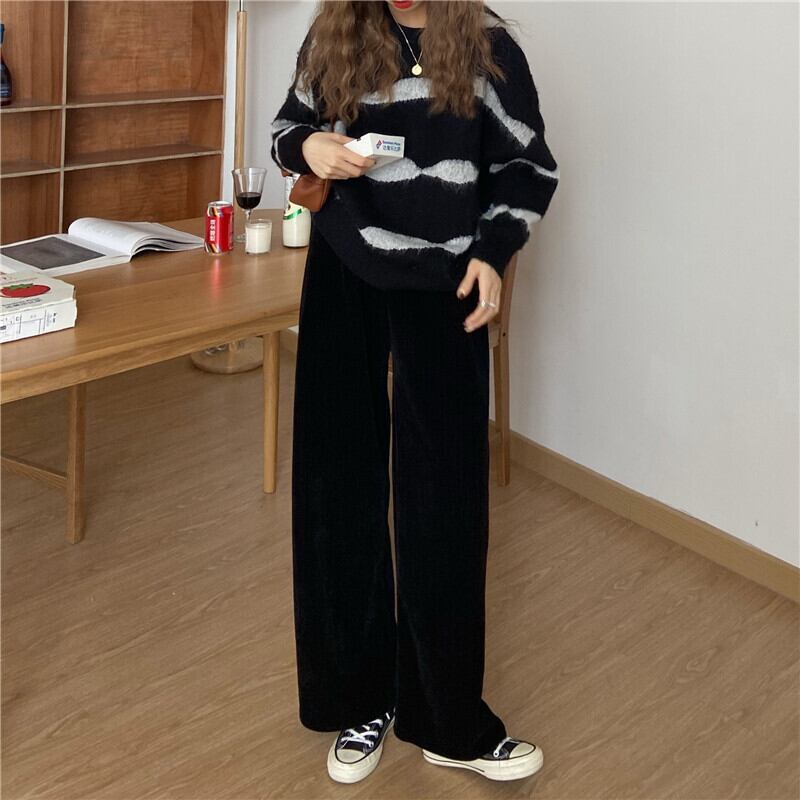 コーデュロイパンツ スプリングハイウェストウェストスリムルーズカジュアルワイドレッグ 春物 ワイドパンツ kumikum71302963942