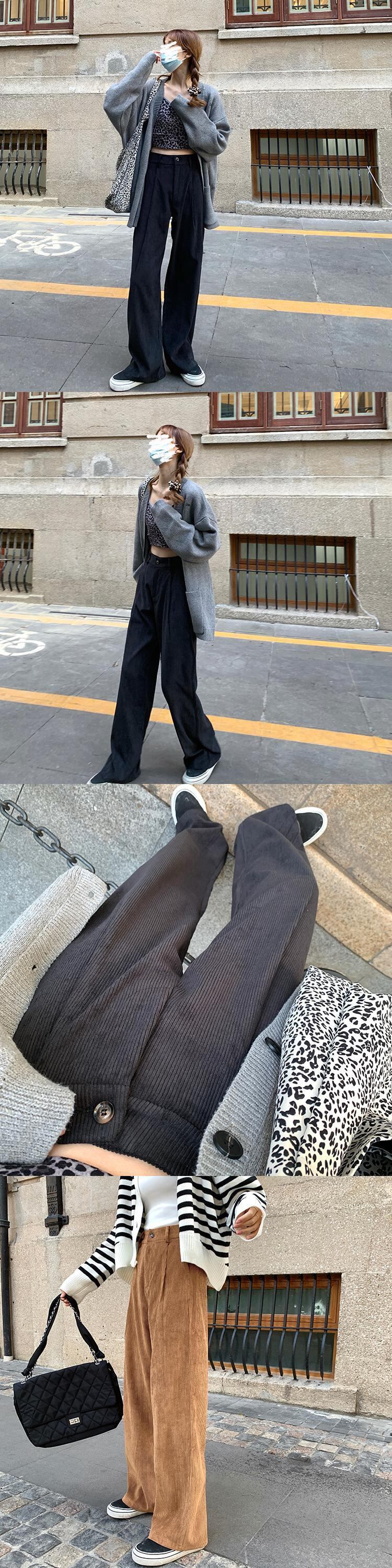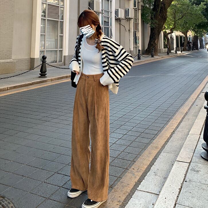 スプリングパンツ スタイルハイウェストウェストコーデュロイカジュアル薄手ルーズソリッド カラー 春物 ソリッドカラー kumikum20247297130