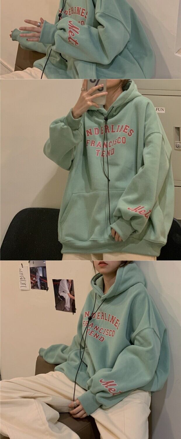 プリント柄フードセーター ジャケット レディースウィンタースタイルルーズプルオーバー トップス ロング 冬物 kumikum56844444205
