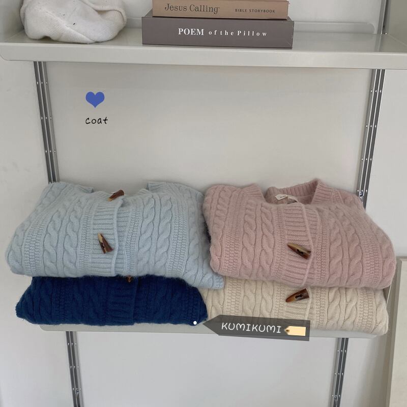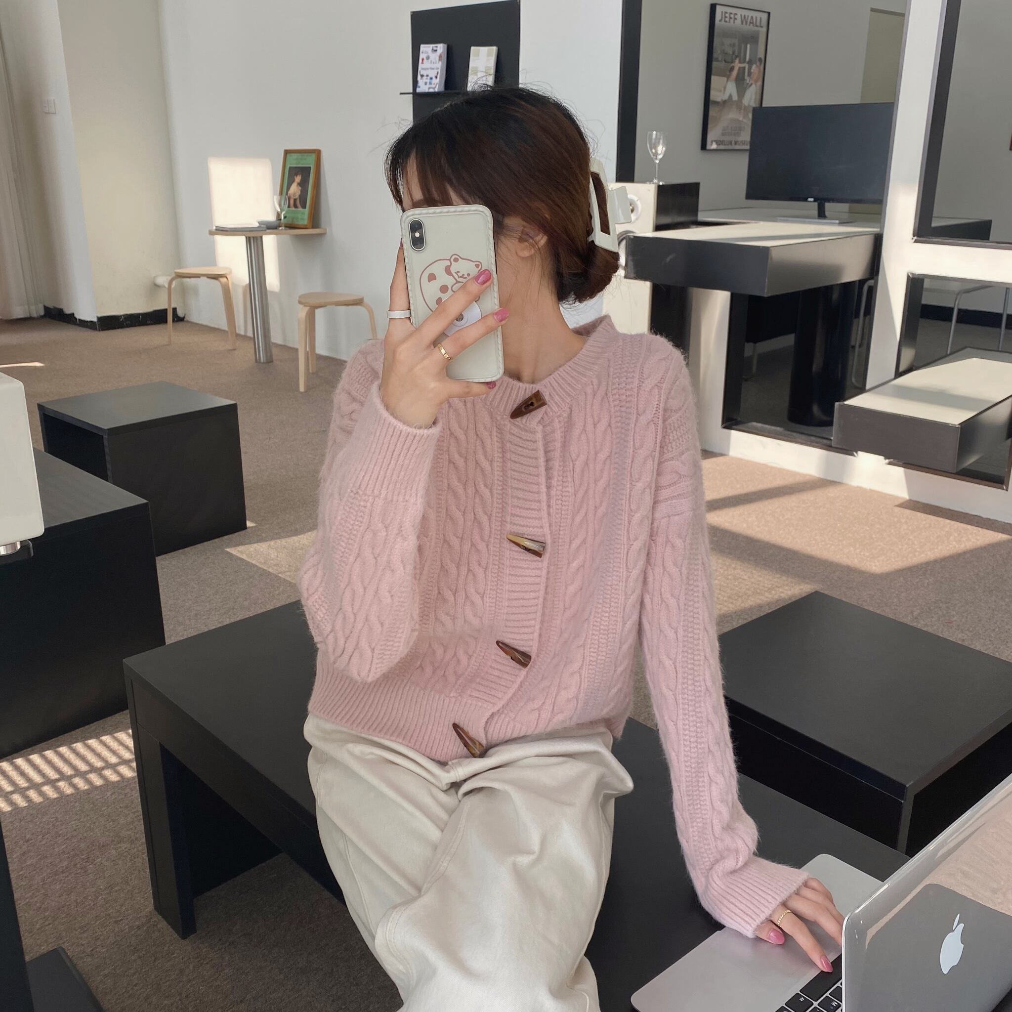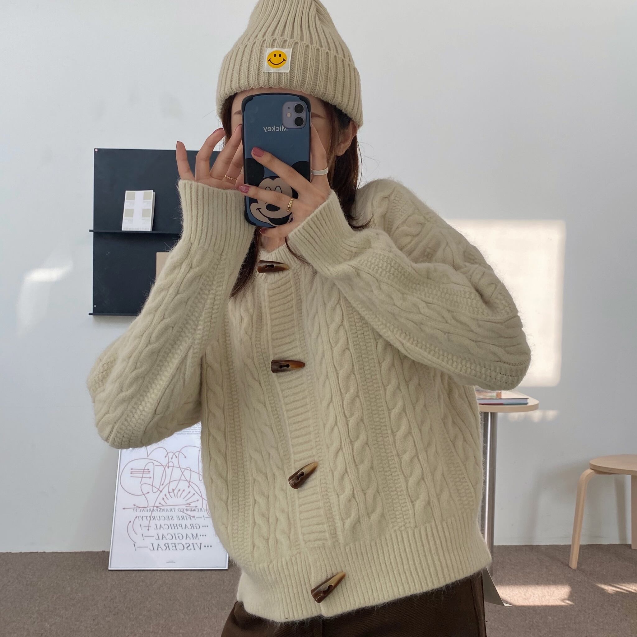 ボタンラウンドネックセーター カーディガンジャケット スプリングルーズトップス ロング 春物 Oネック kumikum34247639497