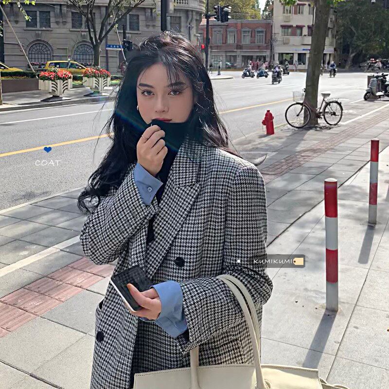 スタンダード格子柄ジャケット レディースルーズウィンターカジュアル レトロ 冬物 kumikum46752810001