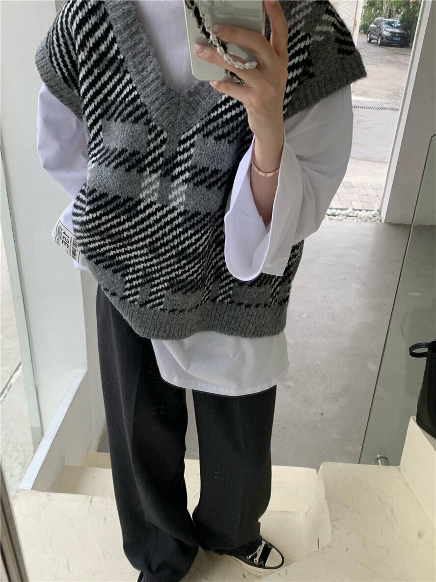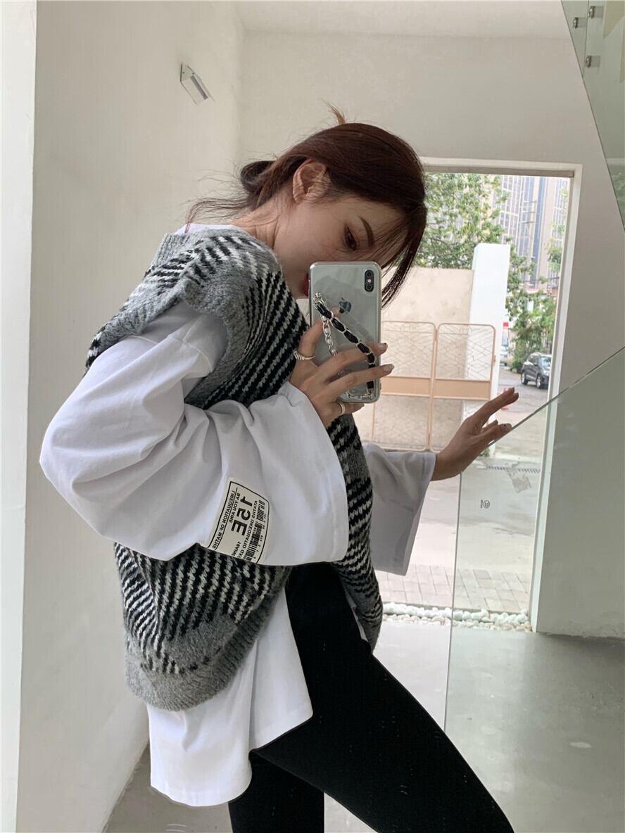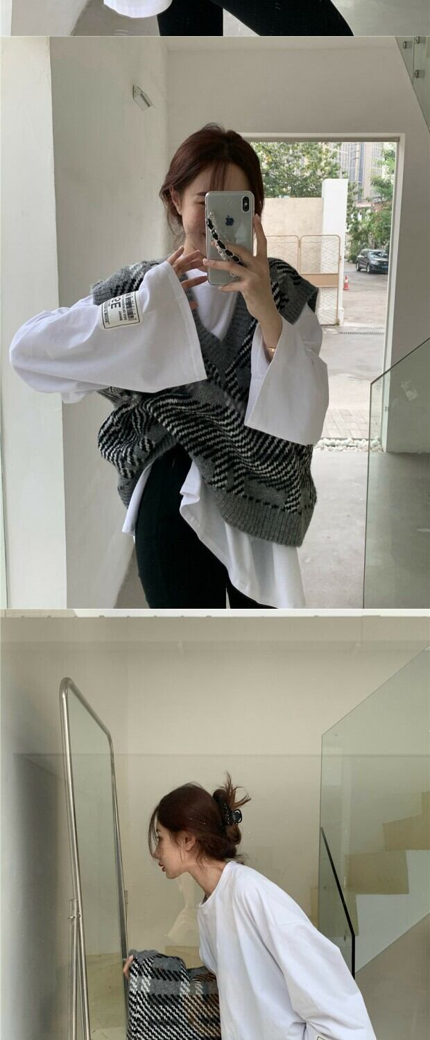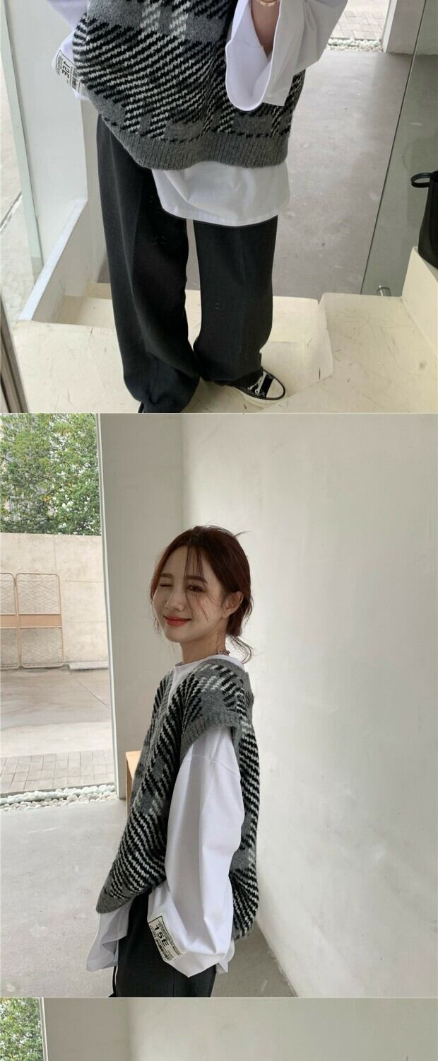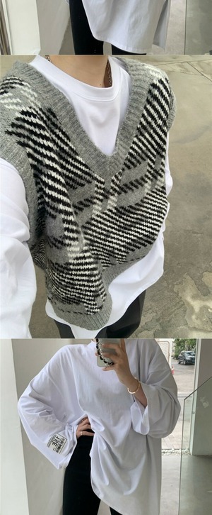 色:グレーのベスト7564,白いTシャツ543