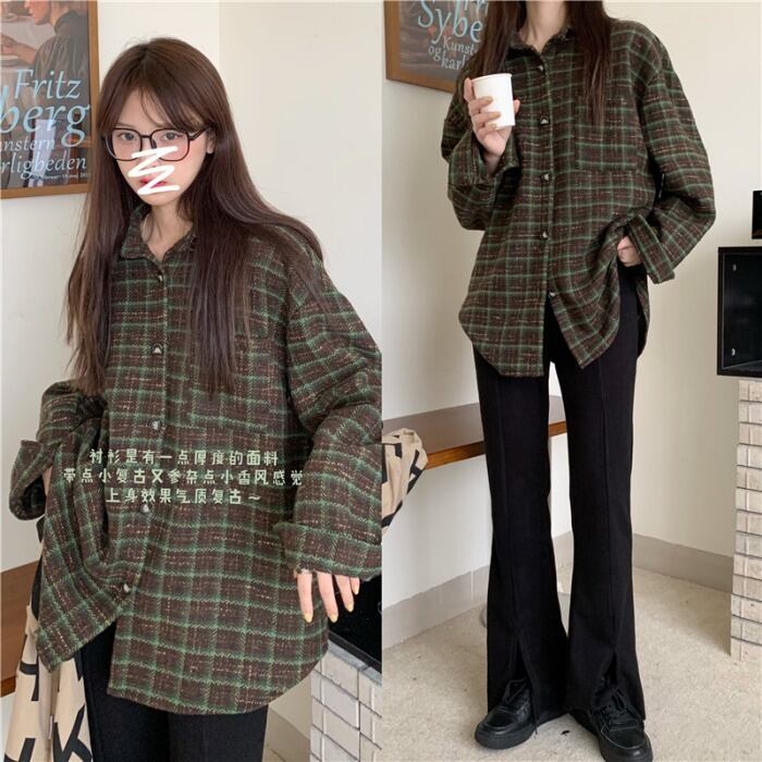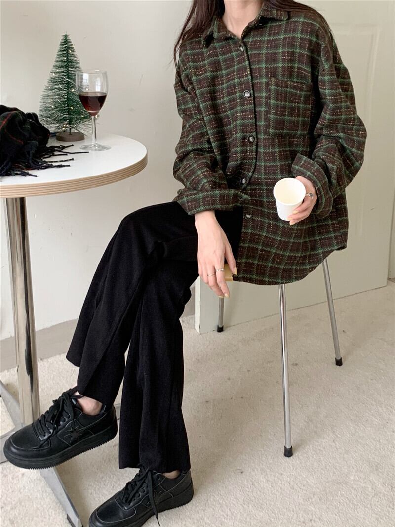 スタイルパターンシャツ ジャケット ウィンターハイウェストウェストルーズ 冬物 kumikum45305168377