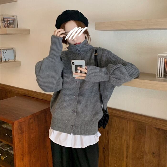 オータムウィンタールーズセーター ニット スタンダードカラーカーディガンジャケット ロング レトロ 秋物 冬物 kumikum51275294193