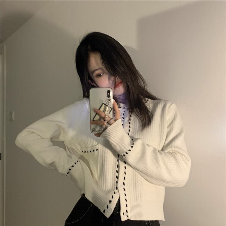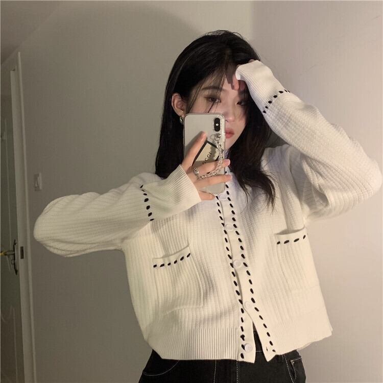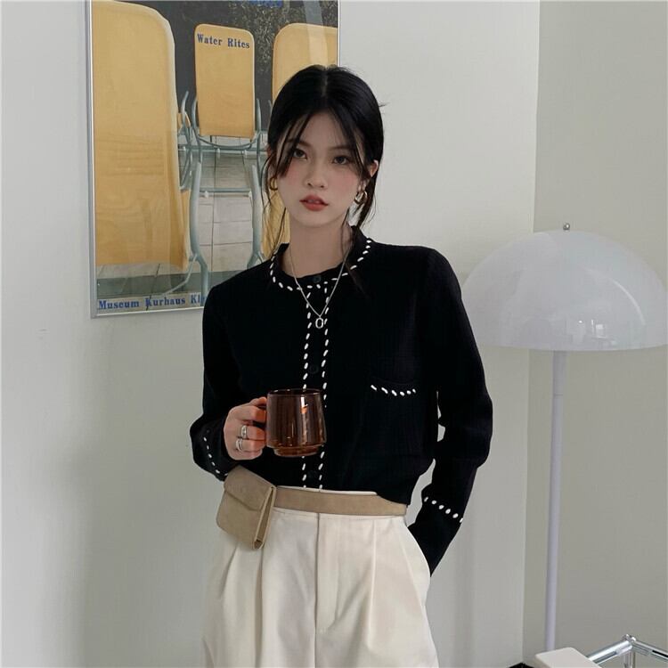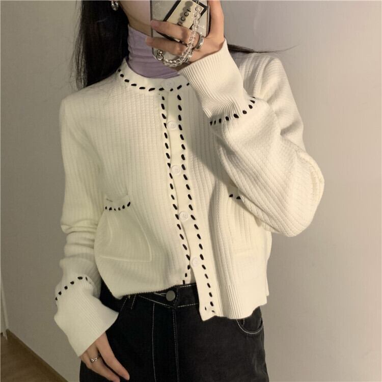 ショートラウンドネックセーター カーディガントップス レディースウィンタールーズジャケット ロング 冬物 Oネック kumikum61222329408