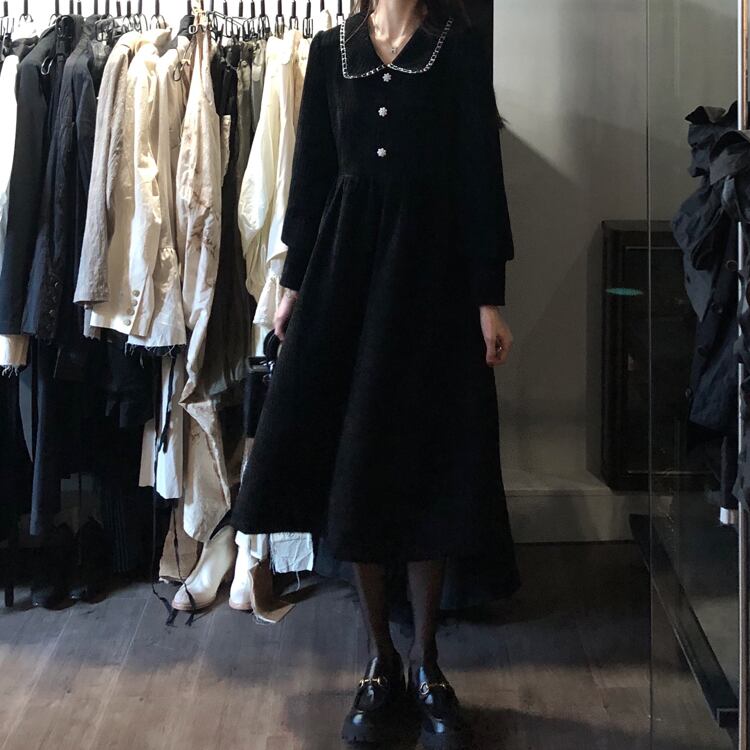 カラーベルベットドレス ウィンタースタイルウェストAラインスカート ロング 冬物 kumikum16043275030