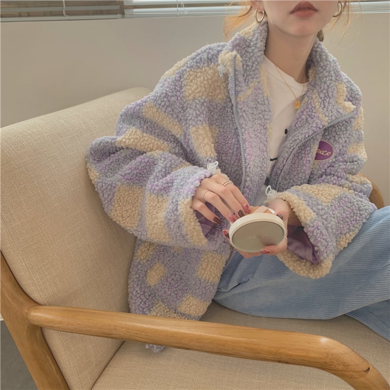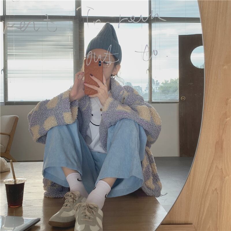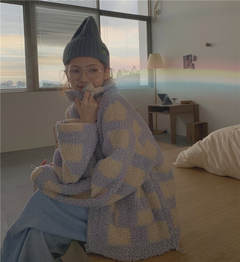 カラースタンダード格子柄カーディガンジャケット オータムウィンタールーズウール コットン レトロ 秋物 冬物 kumikum70570631557