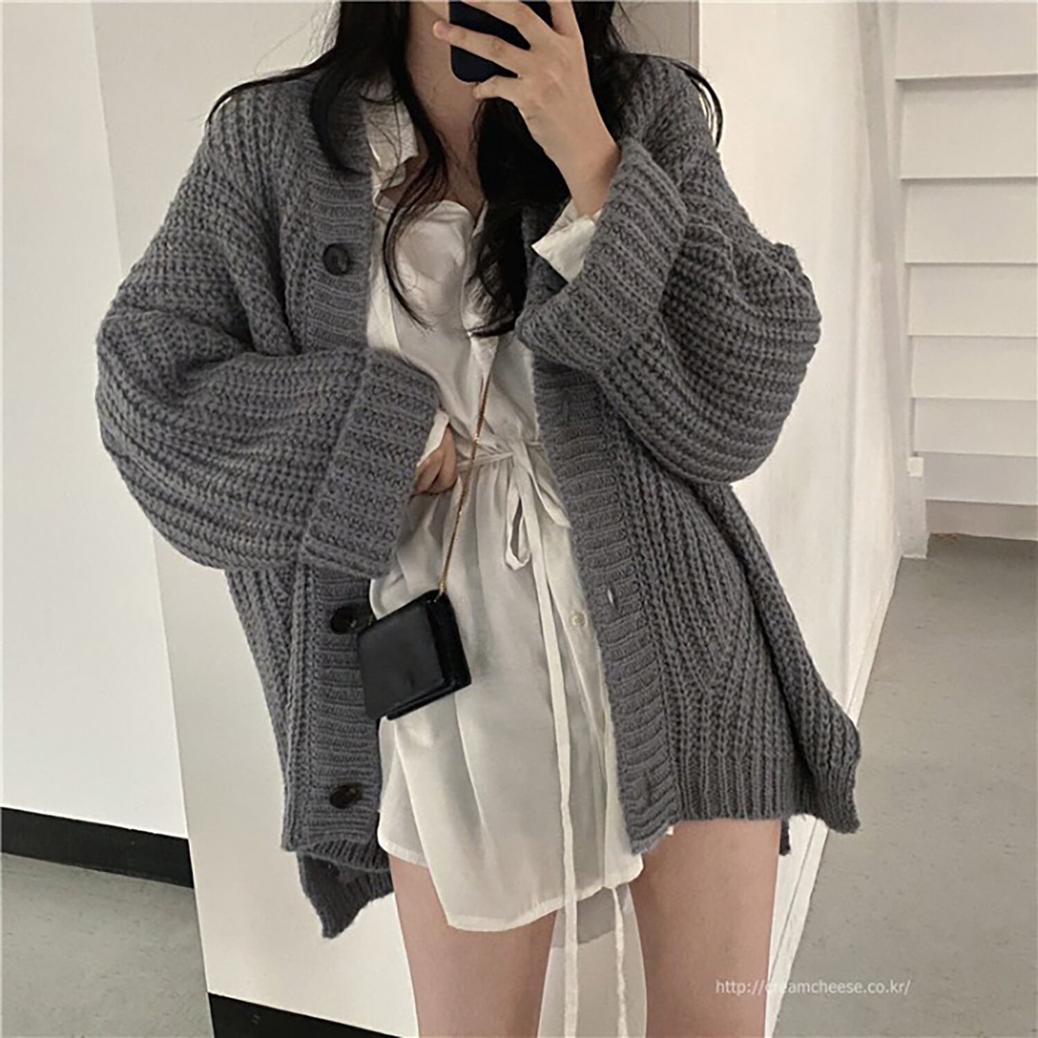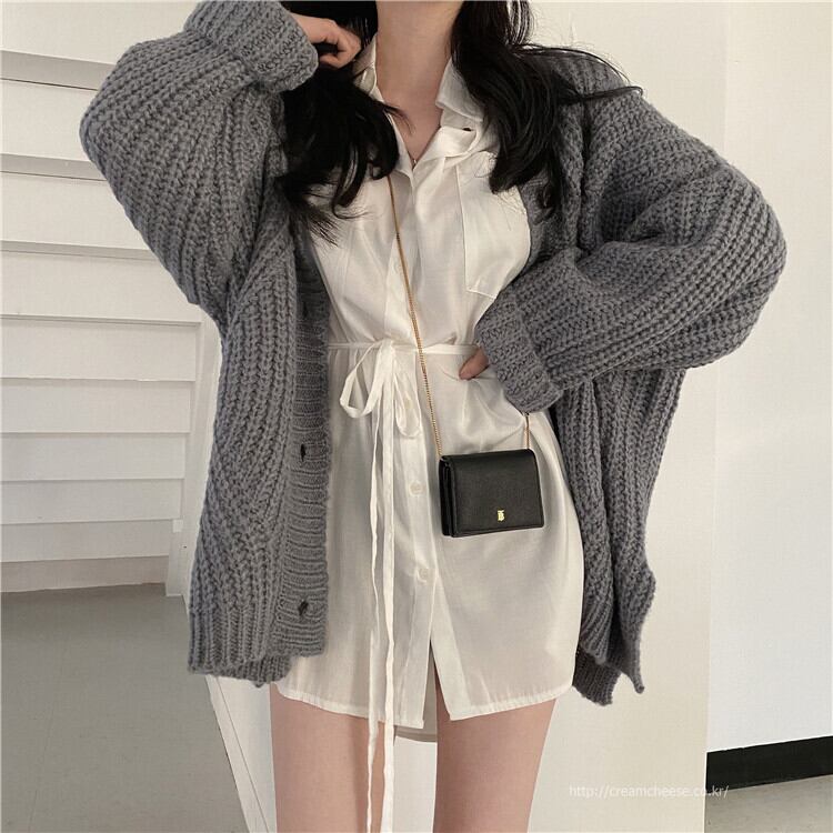 スタイルルーズグレーセーター カーディガンジャケット スプリング ロング 春物 kumikum95436126749