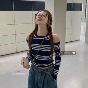 グリーンストライプストラップレスTシャツ スリムショートレッドトップス ロング kumikum92666367848