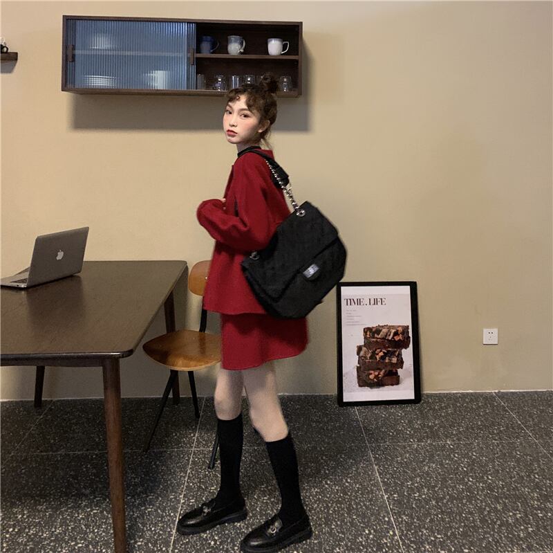 スタイルウィンタースタンダードコート ハイウェストウェストショートスカート レトロ 冬物 kumikum15122378438