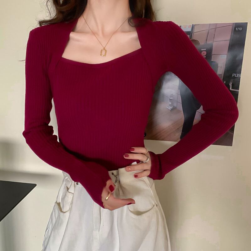 スプリングスタイルニットセーター レディースシャツ プルオーバー ロング 春物 スクウェア kumikum49643715548