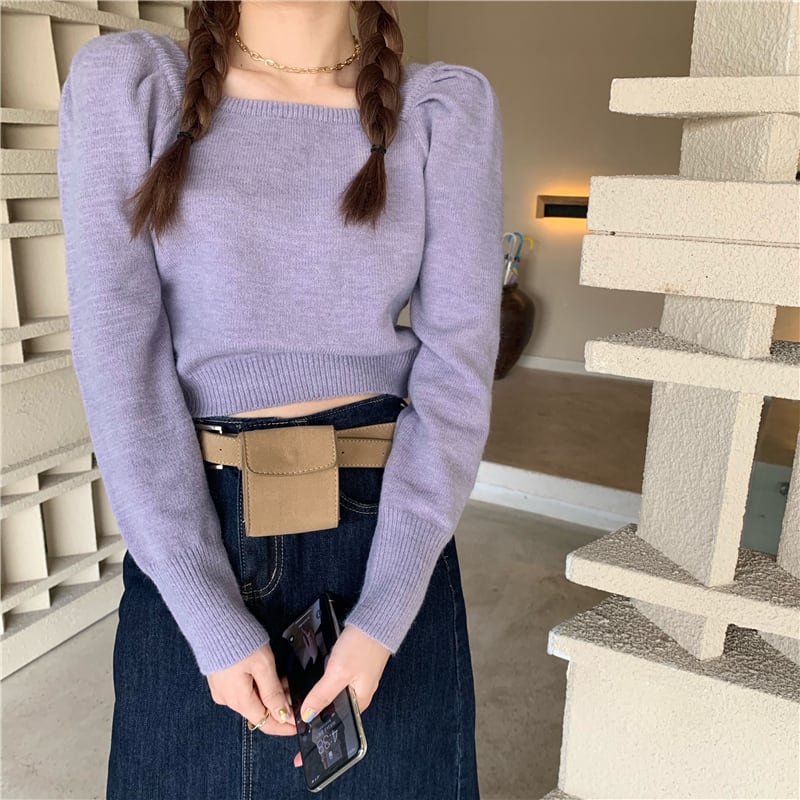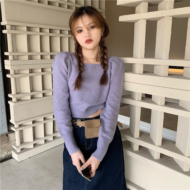 ショートスリーブニットセーター トップス レディーススプリングスリムプルオーバー ロング 春物 スクウェア kumikum75018340912