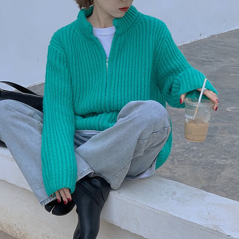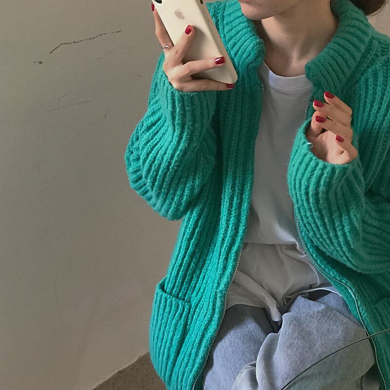 ジッパーカーディガンセーター ジャケット レディースオータムウィンタールーズニットトップス ロング 秋物 冬物 kumikum86675898514
