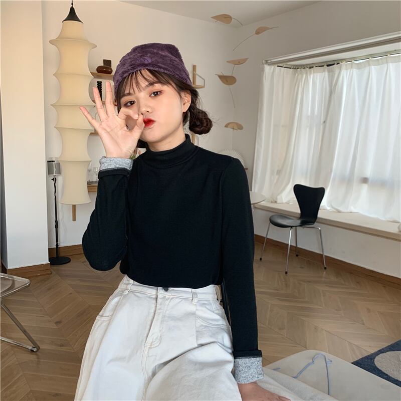 カラーシャツ トップス スプリングソリッド ベルベットTシャツ ロング 春物 ソリッドカラー kumikum40270227930