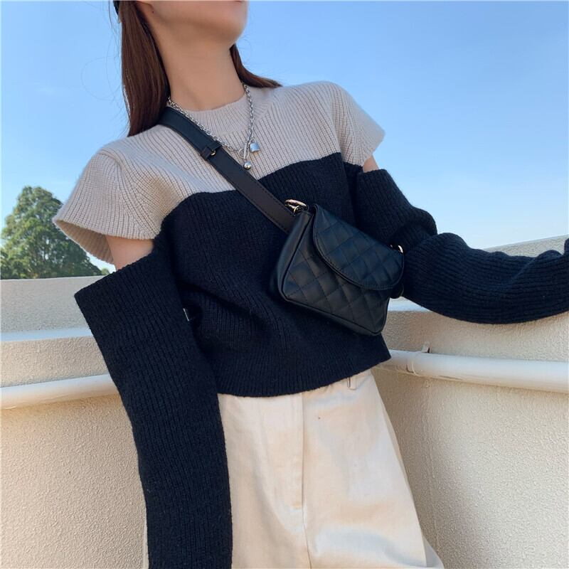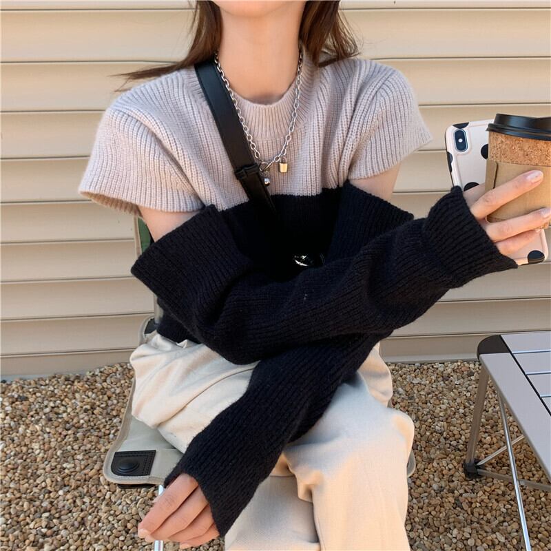 カラーセーター トップス レディースオータムショートルーズプルオーバー ロング 秋物 オフショルダー kumikum28575850655