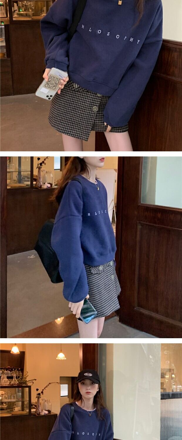 ショートベルベットラウンドネックセーター ジャケット ウィンタールーズプルオーバー トップス ロング 冬物 Oネック kumikum36267493294