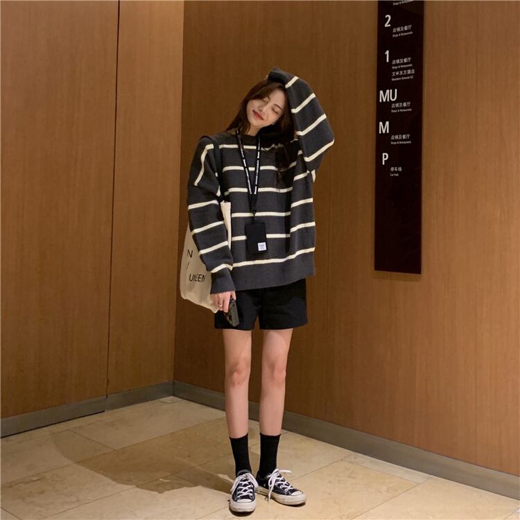 カラーストライププルオーバー レディースウィンタールーズニットセーター トップス ロング 冬物 kumikum12438074856