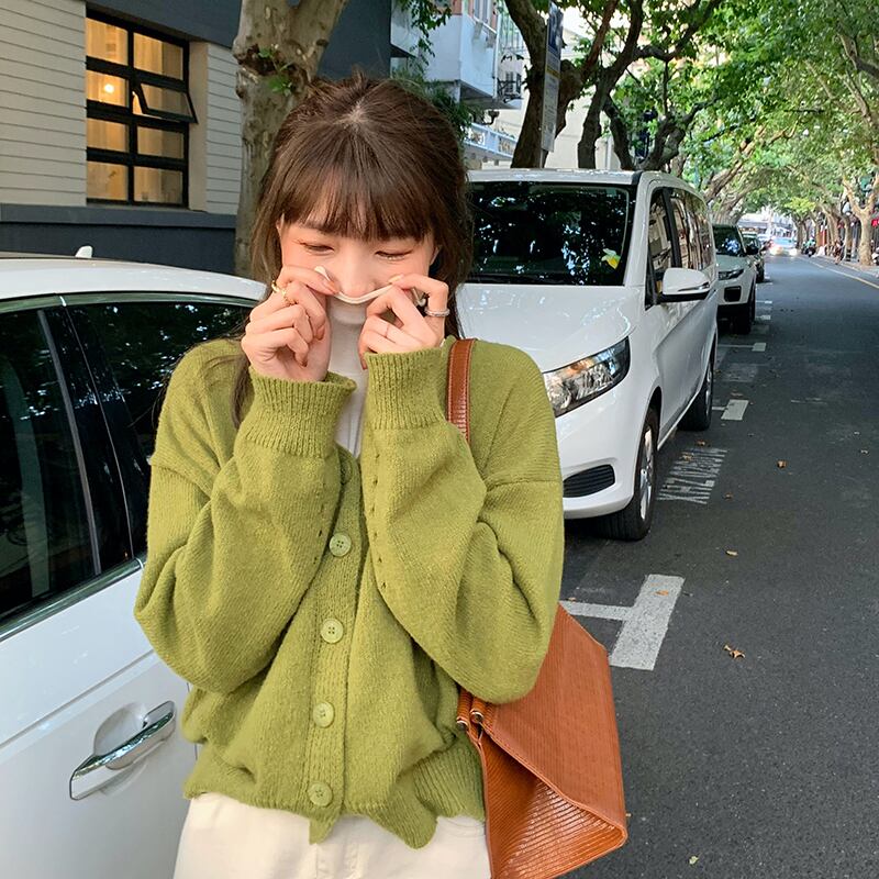 スタイルレッドVネックカーディガンセーター ルーズショートオータムジャケット ロング 秋物 kumikum79994387367