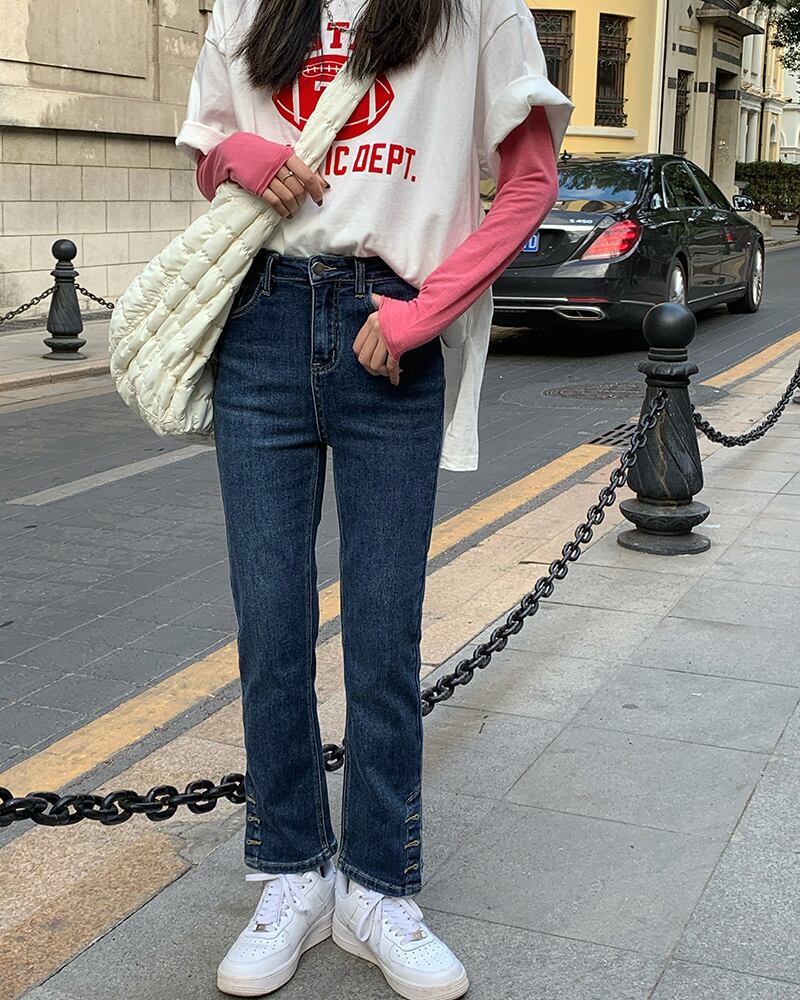 スプリングパンツ ハイウェストスリムジーンズ ロング 春物 kumikum61203540571