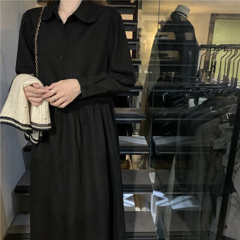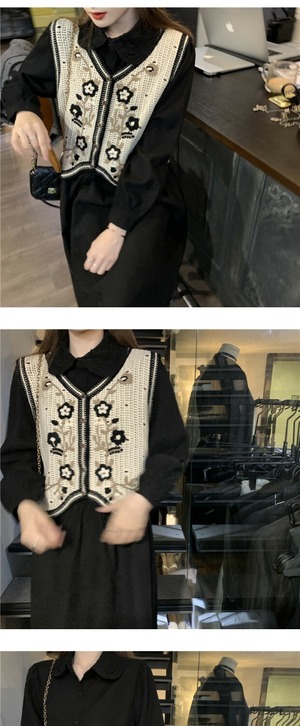 色:黒いドレス,オフホワイトフラワーベスト
