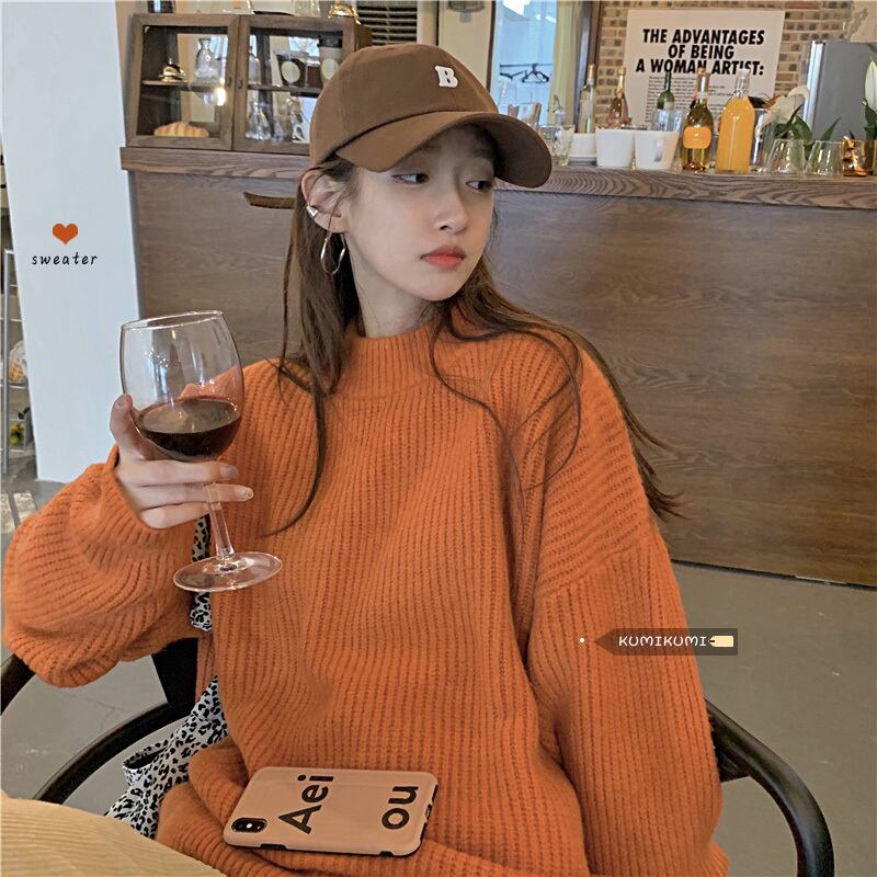 ルーズラウンドネックセーター トップス レディースオータムウィンタープルオーバー ロング 秋物 冬物 Oネック kumikum12946359878