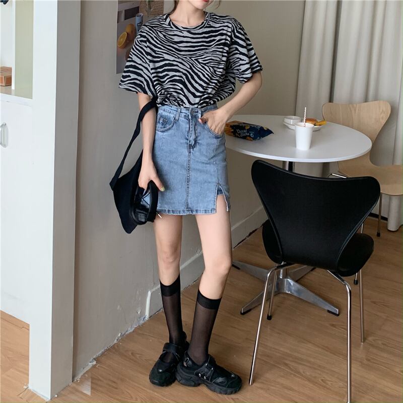 ルーズカジュアルストライプトップス シャツ サマー薄手レッドTシャツ 夏物 kumikum20777200467