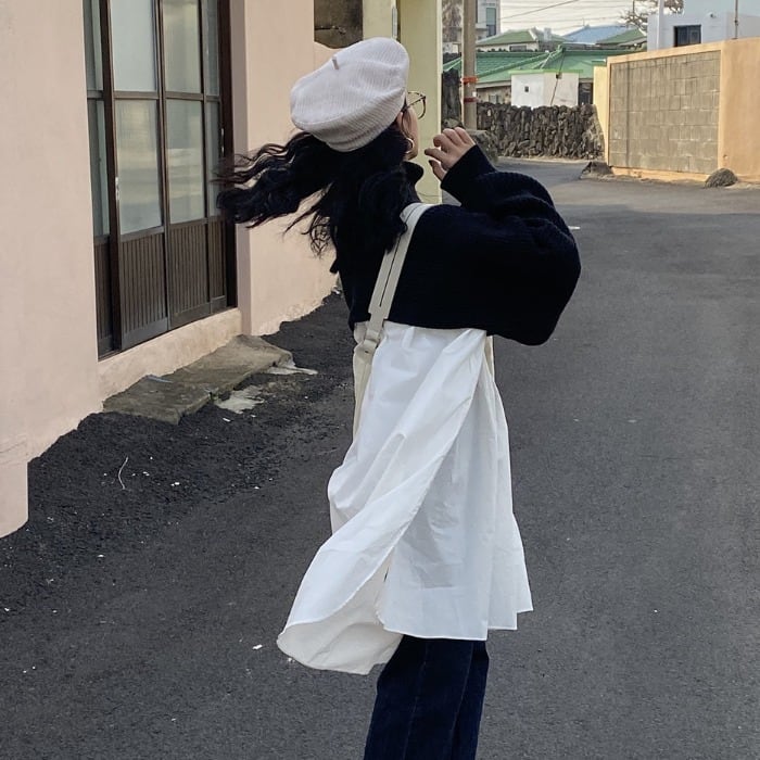 ショートセーター 長袖スリーブブラウス トップス オータムシャツ スカート スタイル ロング 秋物 kumikum59128245723