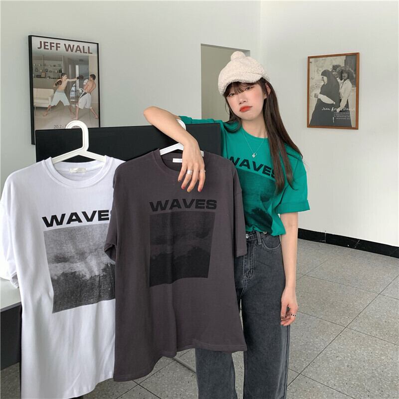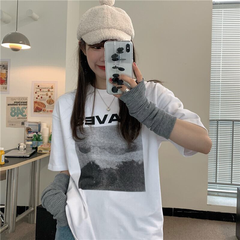 プリントラウンドネックTシャツ シャツ ルーズスプリングトップス 春物 Oネック kumikum72373339408