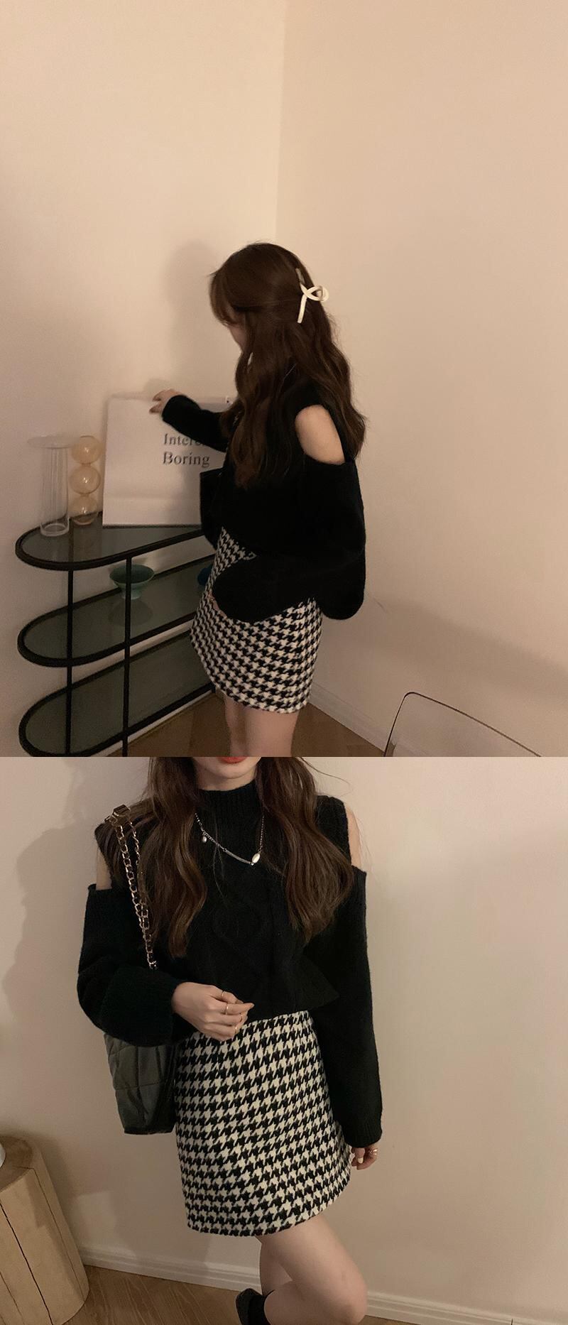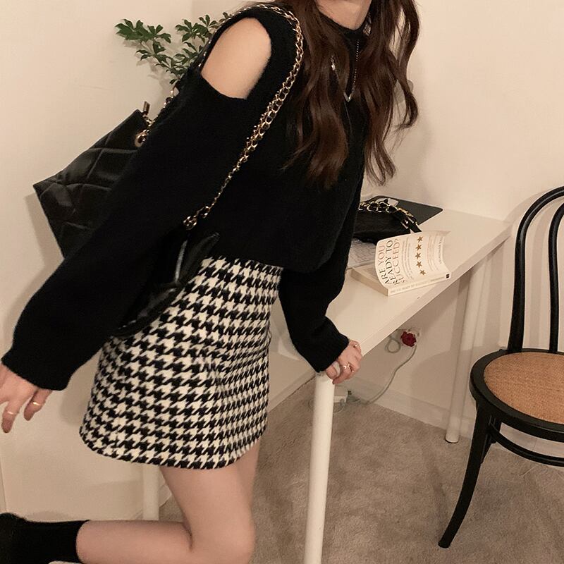 色:黒のセーター20130,ピンクのセーター20130,青いセーター20130,黒千鳥格子ウールスカート10695