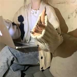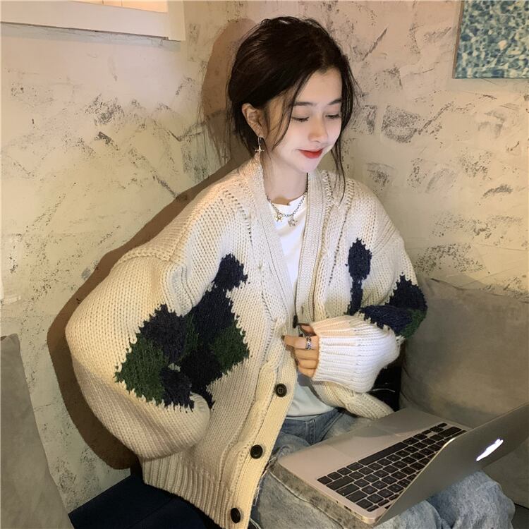 スタンダードカラーセーター カーディガンブラウス ウィンターVネック長袖スリーブルーズニットコート ロング レトロ 冬物 kumikum12579204878