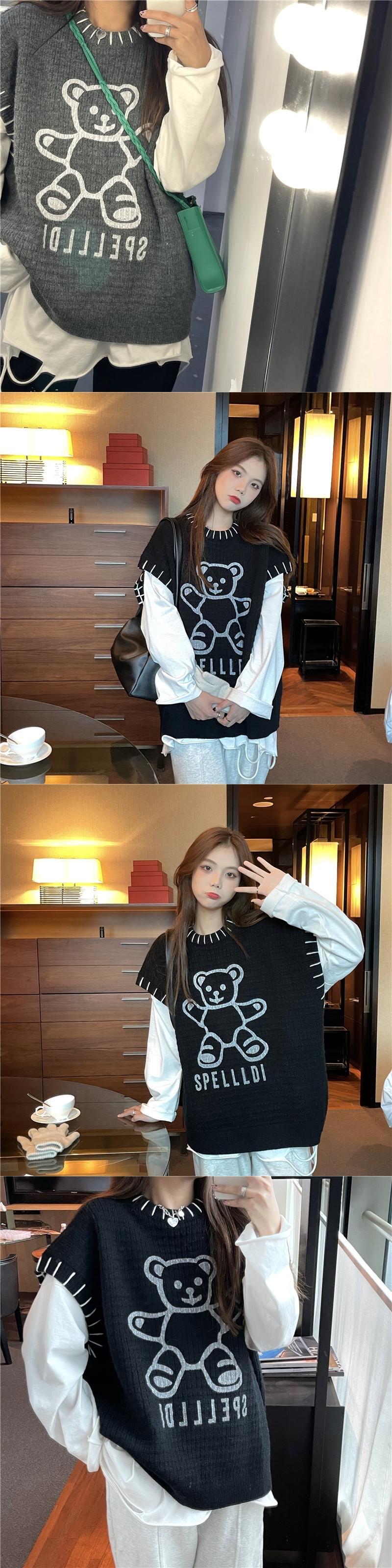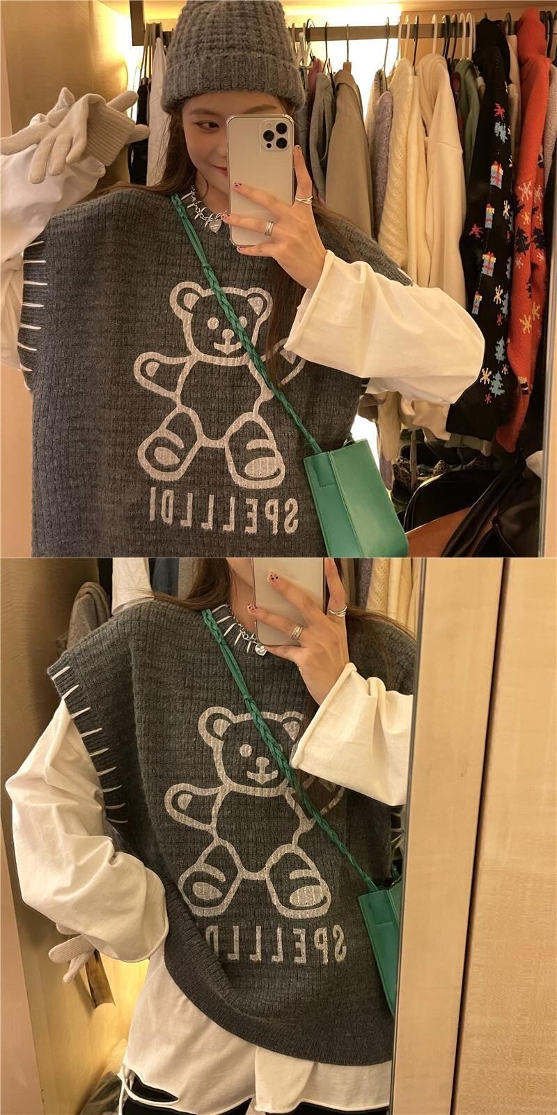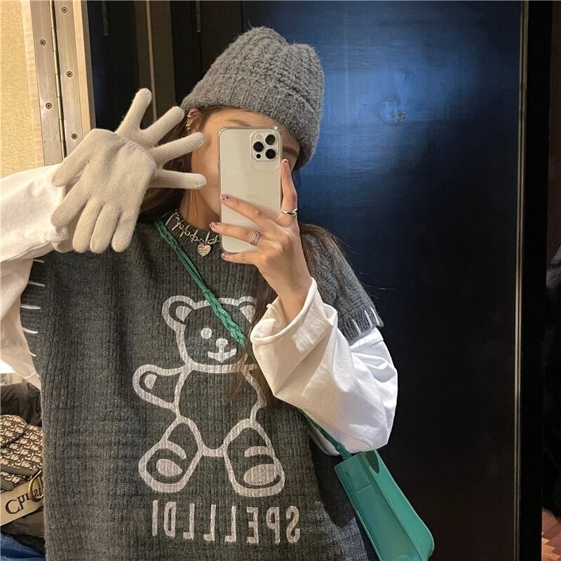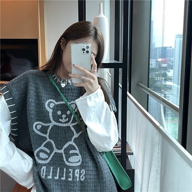ニットジャケット スプリングラウンドネックノースリーブウール 春物 Oネック kumikum48804820292