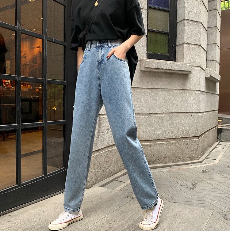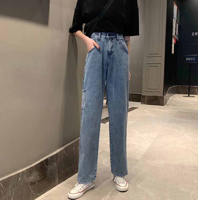 ポケットハイウェストウェストジーンズ スプリングスタンダードルーズパンツ 薄手 レトロ 春物 kumikum68135980133