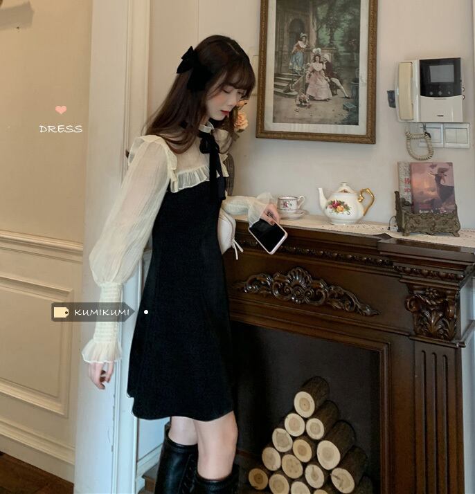 ドレス ウィンターハイウェストウェストリボンショートスカート フリル ロング ラッフル 冬物 ステッチ kumikum52701480633