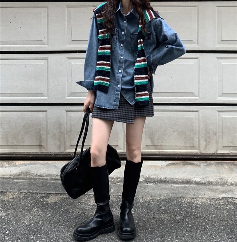 ルーズスタンダードシャツ ジャケット オータムカジュアル ロング レトロ 秋物 kumikum93460461695