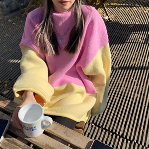 プルオーバー セーター レディースウィンターロングルーズラウンドネックカラースタイルトップス 冬物 Oネック kumikum70707181521