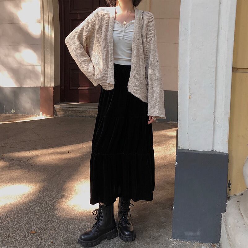 ベルベットスカート オータムウィンター薄手クロスブラックAライン 秋物 冬物 kumikum10264532127