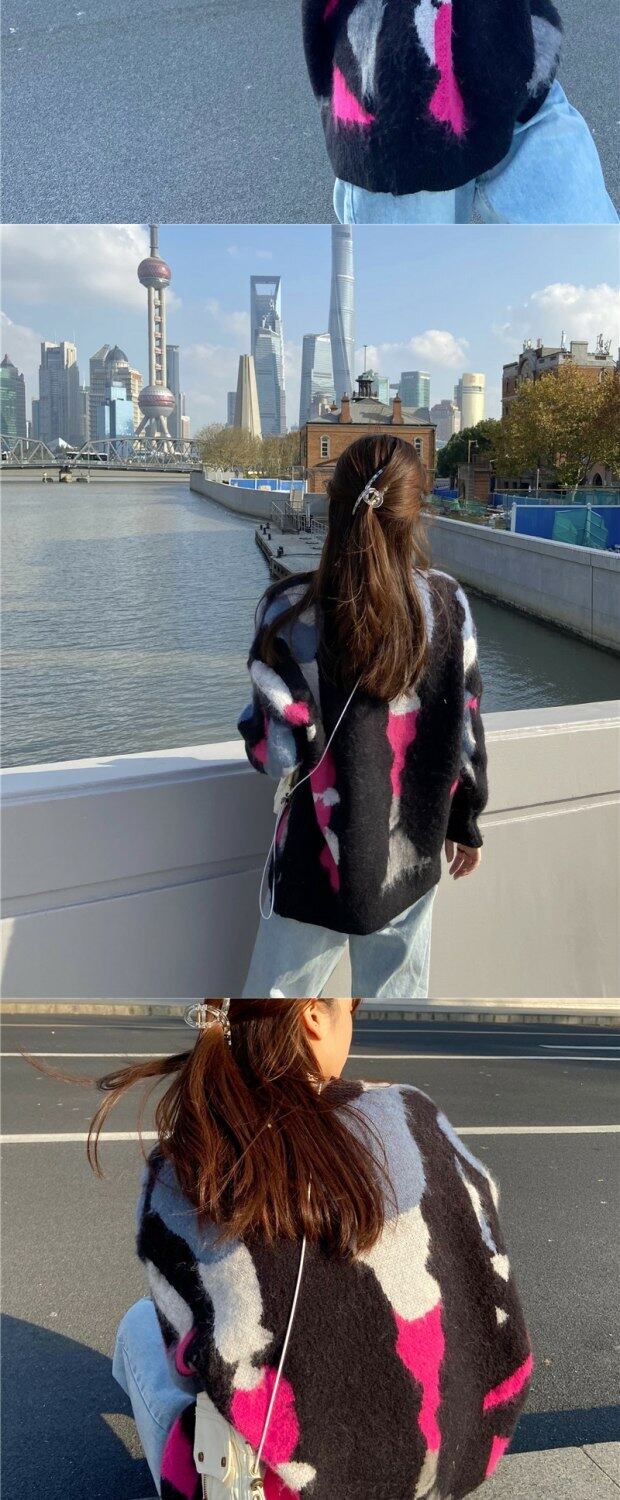 カラーラウンドネックプルオーバー セーター レディースウィンタールーズニットトップス ロング 冬物 Oネック kumikum77726051263